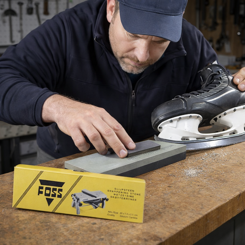 De Foss slijpsteen is van uitstekende kwaliteit. De steen heeft een groffe kant voor het slijpen en een fijne kant voor het polijsten. Een steen voor schaatsers die hoge eisen stellen aan het slijpresultaat. Afmetingen : 25 x 7,5 x 2,5 cm.