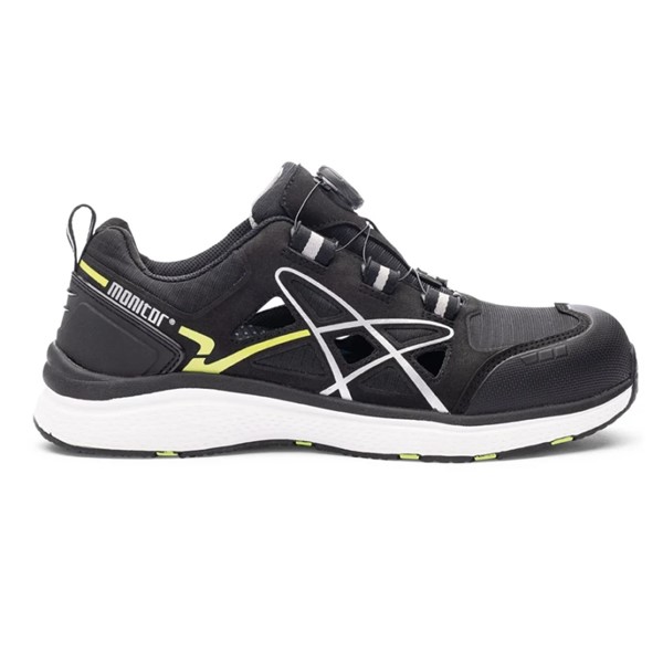 Monitor Graphic is onze nieuwe serie vederlichte veiligheidsschoenen voor logistiek, industrie en lichte constructie. Enterprise is een extreem lichte veiligheidssandaal van 520 gram maar toch zowel een aluminium neus als Pantzar-perforatiebescherming heeft. Het bovenwerk van deze schoen is gemaakt van ripstop-textiel. Ondanks het lage gewicht en de lichtgewicht look heeft deze schoen een wijde pasvorm. De loopzool is gemaakt van rubber met een EVA tussenzool. De binnenzool is de Pro Support-zool van Monitor, die volledig is gemaakt van gerecycled materiaal van PET-flessen.Materiaal: Ripstop Textiel, Zool: Rubber/EVA, Neusbescherming: Aluminium, Tussenzool: Pantzar APT, Pasvorm: Breed