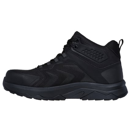 Skechers Speed-Flex Trekker S3 zwart/rood:Ga voorbereid aan de slag met comfort en bescherming in de Skechers werkschoen Speed-Flex Trekker S3 zwart/rood. Deze slipbestendige hoge werkschoen heeft een bovenwerk van synthetisch materiaal en mesh, een vetersluiting, een metaalvrije carbon nano veiligheidsneus, een Skechers Air-Cooled Memory Foam® binnenzool en een Goodyear® rubberen buitenzool.Ontwerpdetails:Bovenwerk van synthetisch materiaal en meshHoge werkschoen met sportief design en vetersluitingHakhoogte van 3,2 cmSkechers® logo-accentBelangrijkste kenmerken:Carbon Nano metaalvrije veiligheidsneus voldoet aan ASTM F2413 normen voor impact en compressie. Geleidt geen warmte of kou dankzij het metaalvrije materiaal en is het lichtste, meest gestroomlijnde neusontwerp van Skechers.Elektrische gevaren (EH) veilige constructie getest volgens ASTM-F2413Slipbestendige (SR) zool met grip op natte en droge oppervlakkenSkechers Air-Cooled Memory Foam® comfortabel dempend voetbedGoodyear® rubberen buitenzool voor extra grip, stabiliteit en duurzaamheid