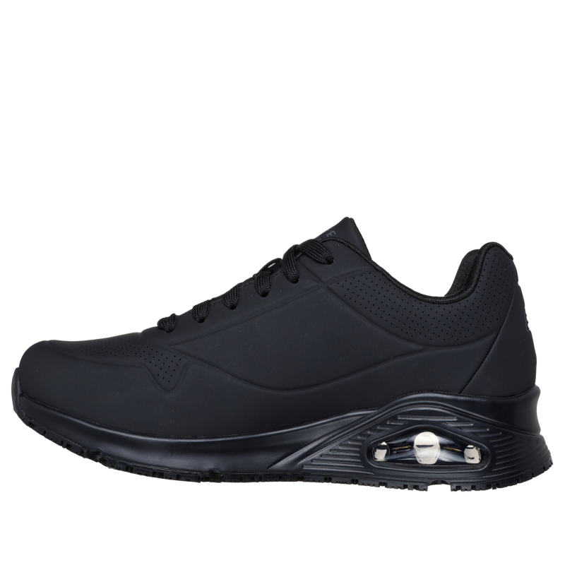 Deze zwarte Skechers Work Uno Slipresistant sneaker voor heren is speciaal ontwikkeld voor op de werkvloer. De antislipzool voorkomt uitglijden op gladde en natte vloeren. Dit is de de perfecte sneaker voor bijvoorbeeld zorgmedewerkers en horecamensen.Deze Skechers sneakers zijn voorzien van een Aircooled memoryfoam voetbed. Door dit voetbed ervaar je ultiem comfort tijdens het lopen.De Skechers Work Uno Slipresistant sneakers zijn ook gepolsterd. Hierdoor ervaar je meer stevigheid bij je enkels.Het voetbed van deze sneaker is uitneembaar.Relaxed Fit® voor extra ruimte en comfort bij de tenen en voorvoetSlipbestendige (SRO) zool met grip op natte, droge, olieachtige en vettige oppervlakkenElektrische gevaren (EH) veilige constructie getest volgens ASTM-F2892Skechers Air-Cooled Memory Foam® comfortabel dempend voetbedSkech-Air® zichtbare luchtkussen-tussenzool