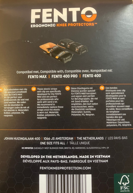 Deze elastieken zijn speciaal ontwikkeld voor de FENTO MAX | FENTO 400 PRO | FENTO 400. Werk je bijvoorbeeld veel met zand? Dan adviseren wij deze clip elastieken. Wanneer je elastieken zijn versleten kun je ze gemakkelijk vervangen. Het zijn stevige en brede elastieken die om de kuit worden gebonden en dus hierdoor niet in je knieholte knellen.sluiting - clip