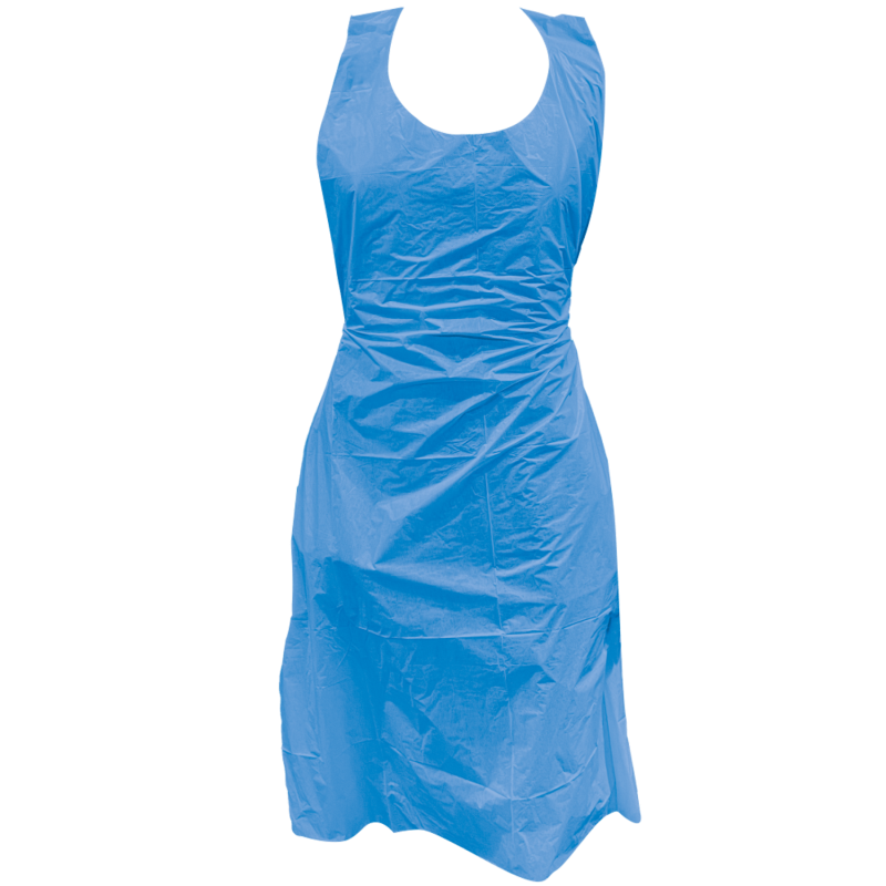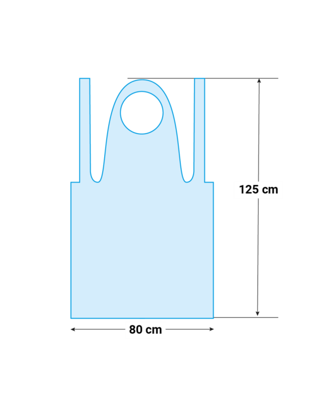 Eigenschappen:Single UseVervaardigd uit PE, 20 muMateriaal met reliëfUitstekende scheurweerstandHoofdband om rond de nek te dragenTwee riemen t.b.v. striksluitingBlauwOne sizePer 50 stuks verpakt op een blokFood approved 1935/2004