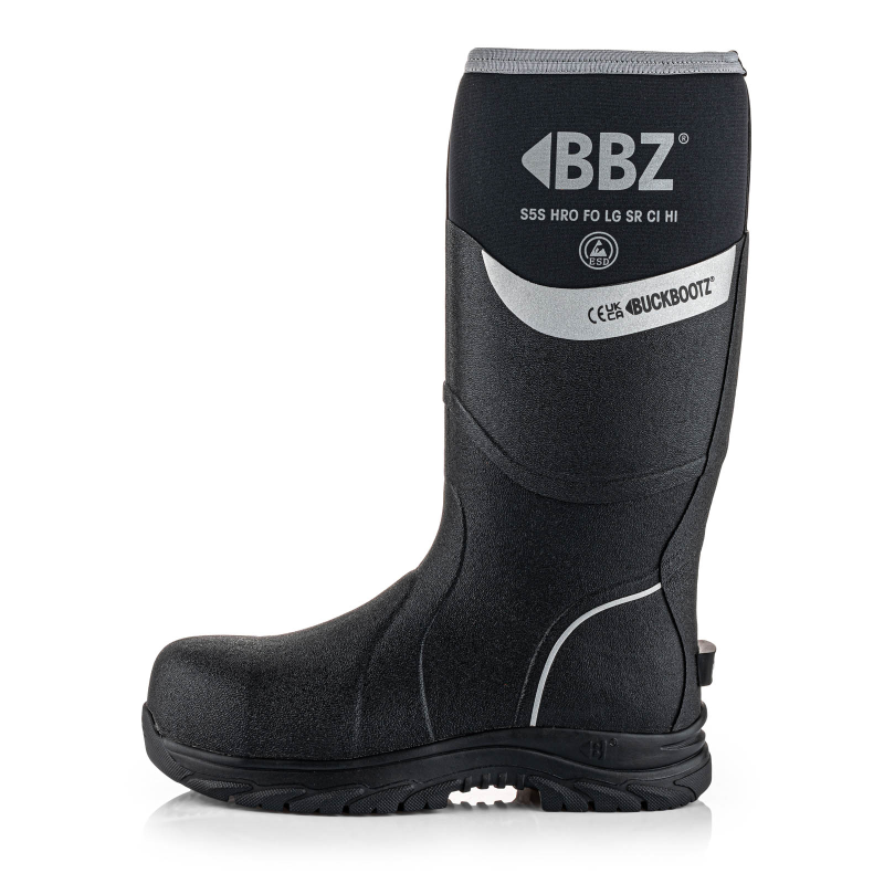 EN norm: S5S HRO FO LG SR CI HI ESDBescherming neus: Metaalvrije neusBescherming zool: Metaalvrije antipenetratie tussenzoolBovenwerk: RubberSamenstelling zool: RubberWaterdichtheid: WR: 100% waterdichtKleur: Zwart BKNMExtra: Non-marking zoolHS code: 6401100000Eigenschappen zool: LG: LaddergripDe BBZ6000BKNM is een zwarte neopreen-rubberen S5S veiligheidslaars die compleet waterdicht en geisoleerd tegen de kou (CI) is. De ademende voering, hittbestendige (HRO), antislip (SR) zool met laddergrip (LG) zorgen voor ideaal loopcomfort.HRO: Hittebestendige zool (300 graden / 60 seconden)FO: Brandstof en oliebestendige loopzoolSR: Antislip zoolCI: koude isolatie tot -19 gradenHI: hittebestendige zool tot 150 graden voor 30 minESD gecertificeerd (klasse II)DetectiepoortvrijGEWICHT 2466 gram per paar (mt. 42)