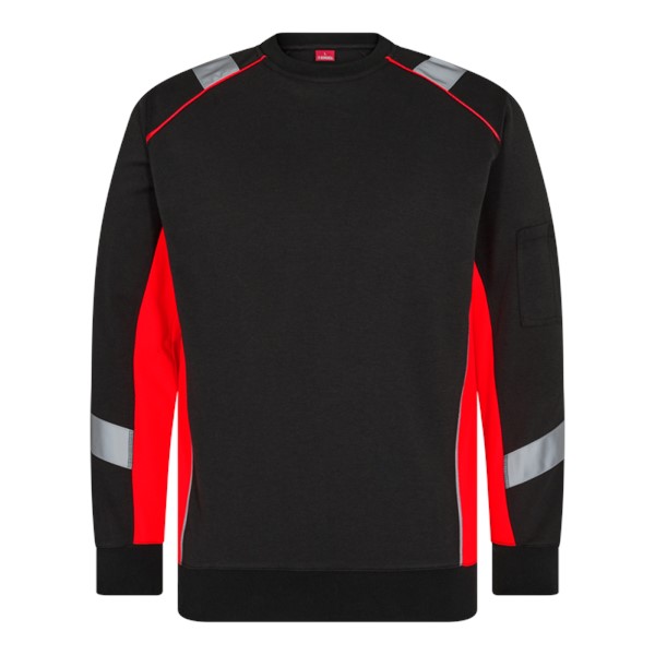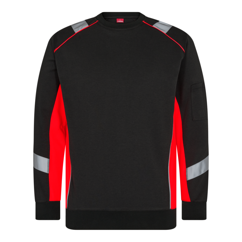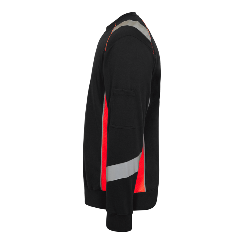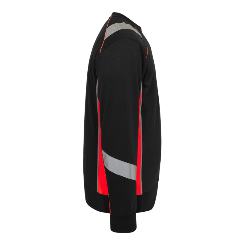 - Comfortabel en licht- Ribboord in de kraag, taille en mouwen- Mouwzakken met insteek voor b.v. schrijfartikelen- Geïntegreerde reflecterende draad in de platte naden- Contrastnaden met structuur- Reflectoren voor betere zichtbaarheid- Niet gecertificeerd volgens EN ISO 20471Comfortabel en licht sweatshirt met ribstof langs de hals, aan de taille en aan de mouwen. Zak met insteek op de linkermouw, bijvoorbeeld voor schrijfartikelen. Reflecterende details voor betere zichtbaarheidBovenstof: 80% Polyester / 20% Katoen, 280 g/m²Contrast stofkwaliteit: 50% Katoen / 50% Polyester, 200 g/m²