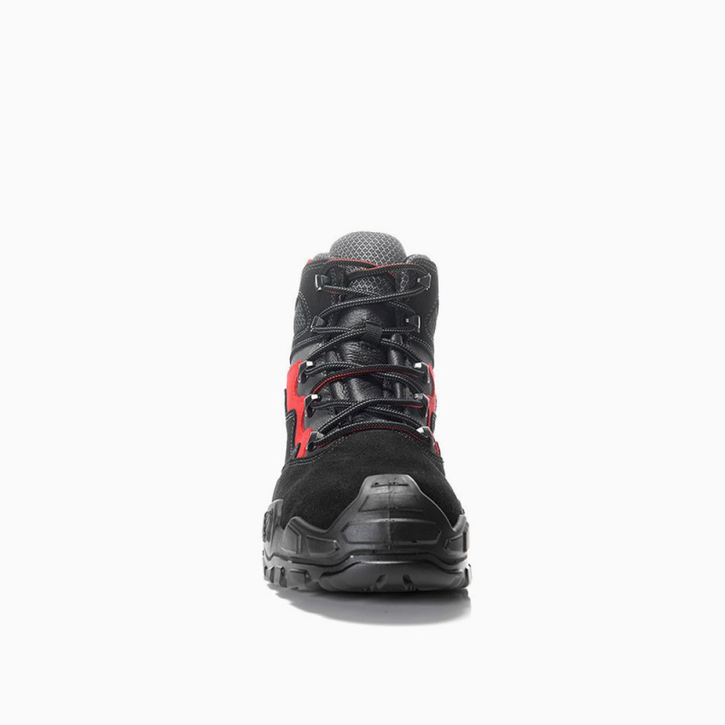 Veiligheidsschoen met hoge hakrandBijlft hij staan of valt hij? De vraag rijst onwillekeurig wanneer iemand met beide voeten op een ladder staat terwijl zij ingewikkelde reparatie- of renovatiewerkzaamheden uitvoert. De MICK black-red Mid ESD S3S maakt deze vraag overbodig, want dankzij de 10 mm hak op de zool is het antwoord: zij blijft staan. Zeker weten, want de hoge hakrand garandeert absolute standvastigheid.Gevaar voor uitglijden is sowieso geen probleem, want de CROSSWORKER-PU/PU-loopzool zorgt altijd voor een uitstekende slipweerstand, ook als u weer van de ladder afstapt en met beide benen op de grond staat. Zelfs als er ergens vloeistof is gelekt of vuil en vuiligheid op de loer liggen, kunt u met deze schoenen altijd veilig van A naar B. Dankzij het bovenwerk van textiel en gehydrofobeerde suède hoeft u niet bang te zijn dat er vloeistof in de schoen komt, want door de gehydrofobeerde coating druipt het er gewoon af.Verdere kenmerken: ademende textielvoering, stalen neusbescherming, metaalvrije perforatiebescherming, PU-beschermneus. De ESD-veiligheidsschoen is verkrijgbaar in de maten 40 t/m 48.Uitrusting MICK black-red Mid ESD S3S:- gehydrofobeerd suède leder/textiel- ademende binnenvoering van textiel- gepolsterde watertong- hele inlegzool ESD PRO black deels van gerecyclede materialen -metaalvrije tussenzool -PU/PU zool CROSSWORKER- slijtvaste PU-beschermneus- stalen neus- EN ISO 20345:2022 S3S FO/SR/SC/LG, type B