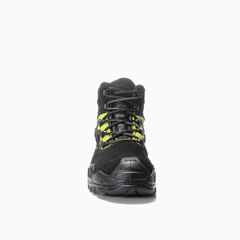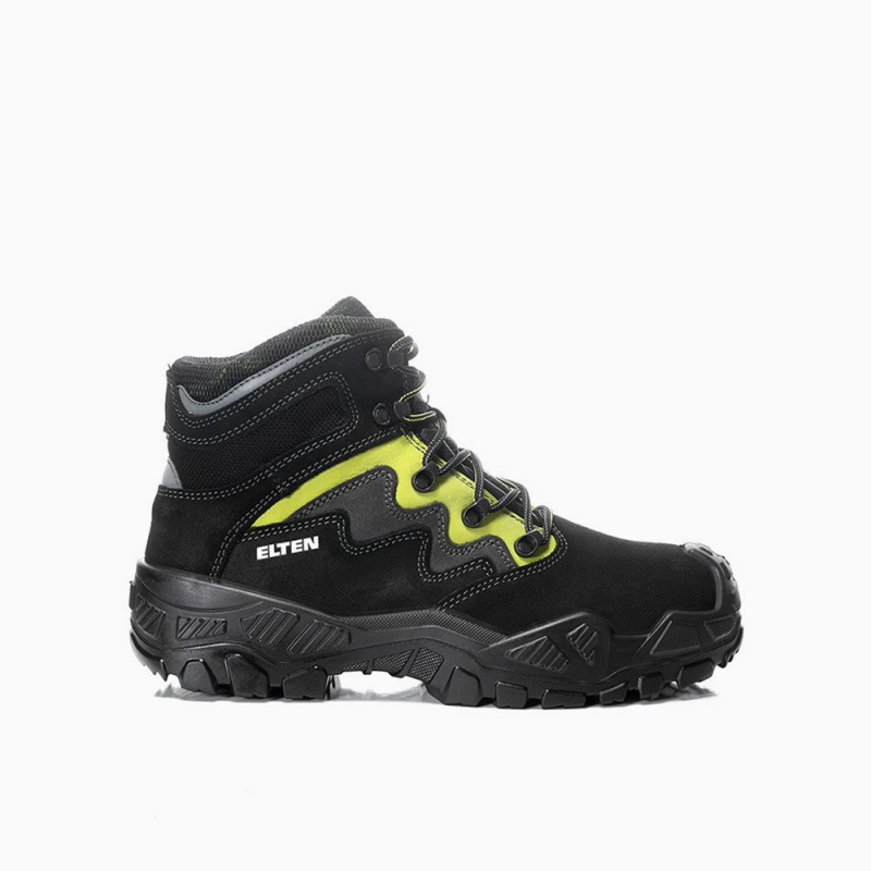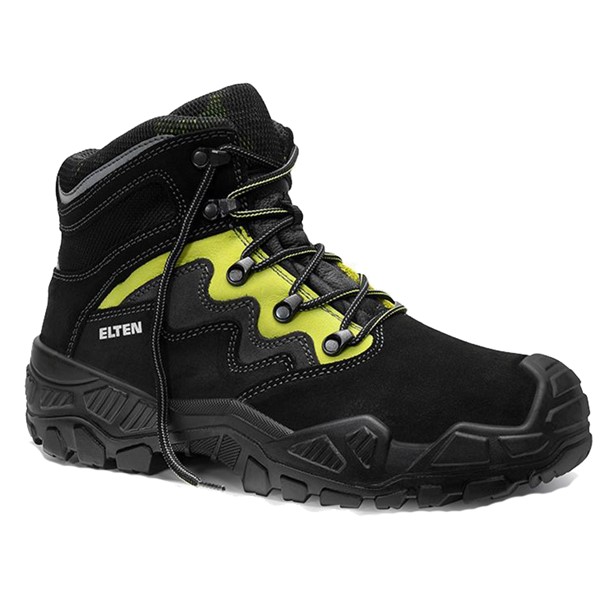 Goede grip op laddersAls u een veiligheidsschoen zoekt die zeer goede grip biedt op ladders, dan vindt u hier wat u zoekt. Met onze CROSSWORKER PU/PU-zool met 10 mm hak en uitstekende antislip zijn ladders en trappen niet langer een probleem. De MICK black-green Mid ESD S3S met een stalen neus en een lichtgewicht perforatiebescherming van textiel beschermt de drager tegen gevaar. Dankzij het gehydrofobeerde suède in combinatie met textiel is hij ook waterafstotend. De ademende voering van textiel zorgt er voor dat zich binnenin geen zweet kan ophopen waardoor hij comfortabel om te dragen blijft. Er is ook aandacht besteed aan de ESD-capaciteit. De schoen heeft een ESD PRO black inlegzool die elektrische lading gecontroleerd via de schoen afvoert. De veiligheidsschoen ziet er goed uit met reflecterend materiaal aan de zijkanten en een PU-beschermneus die bovendien de duurzaamheid bevordert. Het polyurethaan minimaliseert scheuren en kreukels in het bovenwerk. De veiligheidsschoen is verkrijgbaar in de maten 40 t/m 48.Uitrusting MICK black-green Mid ESD S3S:- gehydrofobeerd suède leder/textiel- ademende binnenvoering van textiel- gepolsterde watertong- hele inlegzool ESD PRO black deels van gerecyclede materialen- metaalvrije tussenzool- PU/PU zool CROSSWORKER- slijtvaste PU-beschermneus- stalen neus- EN ISO 20345:2022 S3S FO/SR/SC/LG, type B