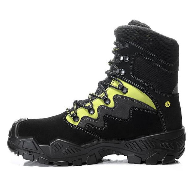 Norm-vorm: type CDGUV 112-191: Steunzolen, Steunzolen en anpassingVoeringsmateriaal: wintervoeringNorm: EN ISO 20345:2022 S3S FO/SR/SC/LG/CI, type CInlegzool: hele inlegzool ESD PRO black deels van gerecyclede materialenGeslacht: HerenBovenmateriaal: gehydrofobeerd suède leder/textielStalen neus: stalen neusPenetratiebescherming: metaalvrije tussenzoolVeiligheidsklasse: S3SSluiting: VetersMICK black-green High ESD S3S CI 0783871-0Allround veiligheidsschoen met hoge hakrandEr zijn veel tips voor het veilig werken met ladders: kies de juiste ladder, zet hem stabiel en veilig neer, controleer de sporten. Hier komt nog een tip: onze MICK black-green High ESD S3S CI. Want deze veiligheidsschoen heeft een hakrand van 10 mm op de buitenzool. Door deze hakrand kunt u zich stevig op de sport 'vasthaken' waardoor u altijd een goede standvastigheid hebt. Het profiel met de asymmetrisch geplaatste blokken en diepe groeven aan de voor- en achterkant zorgt voor meer grip bij draaiende bewegingen waardoor de CROSSWORKER PU/PU-zool ook in andere situaties voor een perfecte slipweerstand zorgt. Het bovenwerk van gehydrofobeerd suède en textiel zorgt voor de nodige robuustheid. Wie niet alleen robuuste schoenen zoekt, maar ook zweetvrije dagelijkse metgezellen, hoeft zich geen zorgen te maken dankzij de ademende binnenvoering. De stalen neus biedt de tenen bescherming tegen stoot- en pletgevaar en de metaalvrije perforatiebescherming voorkomt dat scherpe voorwerpen kunnen binnendringen. Voeg dan nog een PU-beschermneus toe en deze veiligheidsschoen is echt een goede tip en niet alleen voor het werken op ladders.