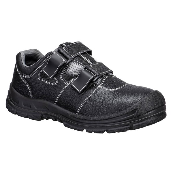 Lichtgewicht S1P veiligheidssandaal ideaal voor gebruik bij warme weersomstandigheden. Voorzien van een dubbele bevestigingsband voor een comfortabelere pasvorm en een tong van air-mesh voor ademend vermogen. Hij heeft een PU/PU loopzool van voor superieure grip en energieabsorptie.KenmerkenHook and loop closureGevoerde kraag voor extra comfortDual density loopzoolSlip resistant outsoleBeschermende stalen neusPrik bestendige stalen tussenzoolAntistatische schoenenBenzine en Olie bestendige loopzoolEnergie absorberende hakCE gecertificeerdMaterialenBuitenzijde: Actie Leer + MeshVoering: MeshTussenzool: Mono PUNeuskap: StaalZool: PU/PU