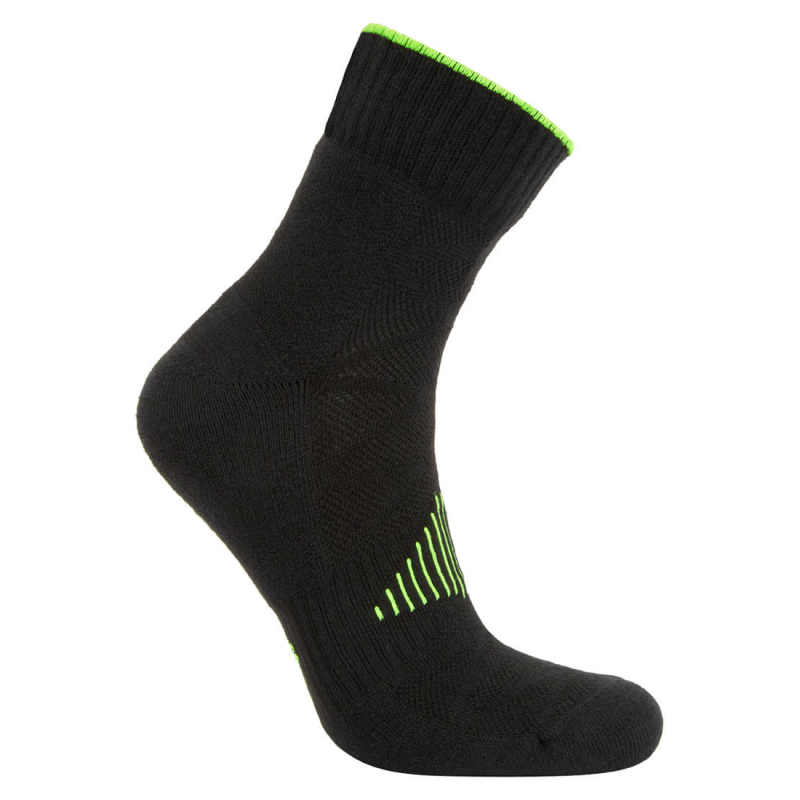 Deze sok is gemaakt van 42% gerecycled draad en is voorzien van platte naden voor meer draagcomfort. De toevoeging van hielversteviging, een zachte zool en een elastische vorm verbeteren de ondersteuning en het comfort. De sok heeft ook geribbelde ronde manchetten en ventilatiezones die ervoor zorgen dat hij zacht en comfortabel is om te dragen.KenmerkenSokhoogte 9cmGemaakt met 42% gerecycled polyesterNaadloze sok voor een goede pasvormDuurzamer door versterkte hiel en neusMesh ventilatie om vocht van de huid af te voerenDe wreefsteun stabiliseert de voet door de voetboog en middenvoet te verstevigenZacht en comfortabelGeribbelde kraagRetail kaart voor verkoop presentatie in de retailKnitting gauge 36Buitenzijde doek : 2% Gerecycled Polyester, 33% Polyamide, 23% Viscose, 2% Elastane