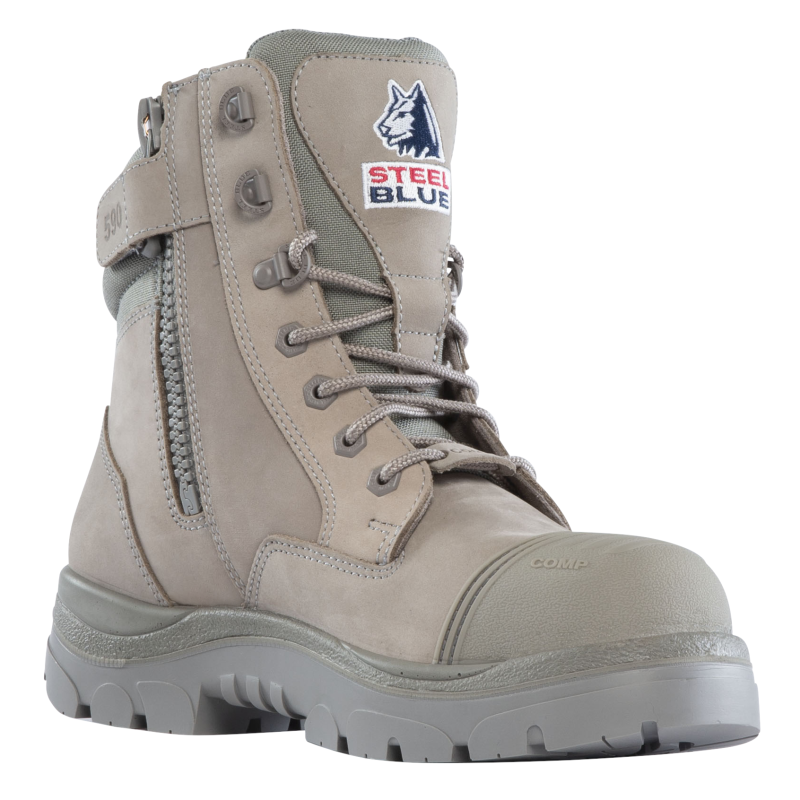 De Southern Cross Zip Scuff S3 is een enkellaars met industriële ritssluiting voor eenvoudig aan- en uittrekken en slijtvaste kruipneus voor extra bescherming van het leder.Materialen bovenzijde:Waterafstotend nubuck rundleder en gestikt met nylondraad. Sterke polyester/cordura veters.Neus:Een composiet neus die een slagkracht kan opvangen van 200J.Voering:De schoen is gevoerd met Baltico®, een zacht hydrofoob materiaal dat vocht afvoert, weg van de voet, zodat de huid koel en droog blijft. Volledige binnenzool:Een voetbed over de gehele lengte in de schoen om extra steun en comfort te bieden. Dit voetbed is gemaakt van zacht polyurethaan dat zijn vorm en dikte behoudt gedurende de gehele levensduur van de veiligheidsschoen.Inlegzool:Krachtige, flexibele antibacteriële niet-geweven binnenzool.Tussenzool:Penetratiebestendige tussenzool vermindert de kans dat scherpe voorwerpen de zool doorboren.Loopzool:Antistatische thermoplastische urethaan (TPU) loopzool voor superieure slijtage-eigenschappen. Hittebestendig tot 130°C. Trisole® Comforttechnologie:Het Steel Blue zoolsysteem is een gepatenteerd systeem met drie dichtheden voor een hoog niveau van comfort, schokabsorptie en energieteruggave. Het systeem gebruikt PORON® als energie-absorberende kussens onder de drukpunten van de voet om de gebruiker een superieur gevoel van comfort te bieden. PORON® wordt ook gebruikt in sportschoenen voor eenzelfde comfort en schokabsorptie.