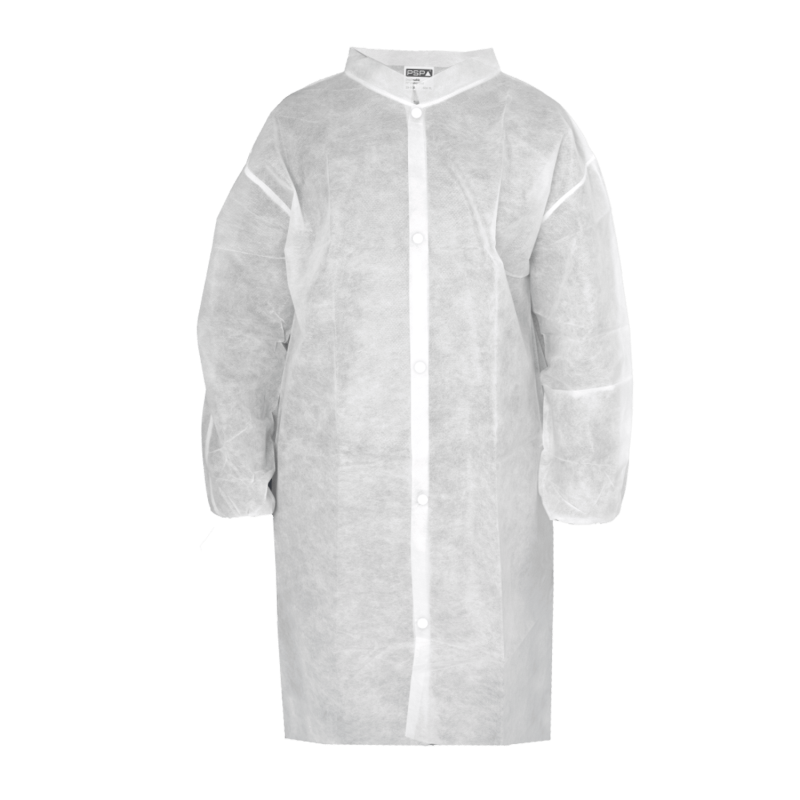 Eigenschappen:Single UseVervaardigd uit PP Soepel materiaal en groot draagcomfortVoorzien van drukknoopsluitingLange mouwen met elastisch manchetLatexvrijSplit aan de achterzijdePer stuk verpakt Food approved 1935/2004