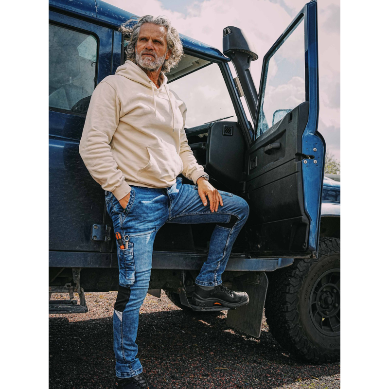 247Jeans Jaguar Workwear W57 Medium Blue Denim UsedDe 247Jeans Jaguar Workwear W57 is een van onze modellen waarbij werk en design samenkomen. Voor het design is gekeken naar alle elementen die nodig zijn om een stoere werkjeans te creëren. Uiteraard hebben we daarbij het werk in het oog gehouden. Multifunctionele zakken met veel opbergruimte voor verschillende gereedschappen en apparatuur geven je de flexibiliteit die je nodig hebt tijdens het werk. De stretch denim stof zorgt als kers op de taart voor een goed draagcomfort en volop bewegingsvrijheid.Fit: Slim fitGeslacht: HerenPasvorm: WorkwearStofsamenstelling: 98,5% Cotton, 1,5% ElastaneCategorie: ProKleurnaam: Medium Blue Denim UsedSluiting: RitsFunctionaliteit: Afsluitbare zak, Duimstokzak, Penzak, Reflectie, Steekzak, Zijzak