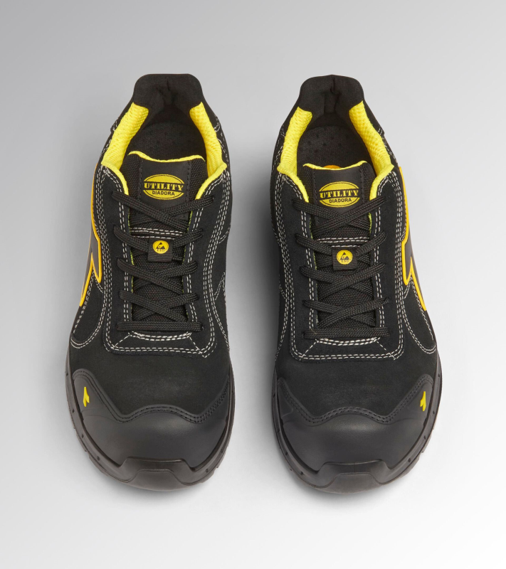 Lage S3S veiligheidsschoenen van waterafstotend en ademend rundersuède. TPU-neusbescherming en ergonomische hielondersteuning. 200J aluminium veiligheidsneus. K SOLE Ultralite antiperforatie-inlegzool. Breedte 11.A.Box System-technologie van Diadora met zijventilatie en Ariatex-membraan. Air Mesh voering met 65% gerecycled polyester en een antislip microvezel-inzetstuk.Uitneembare, microgeperforeerde binnenzool van open-cellig PU-schuim, ademend dankzij actieve koolstof.ESD (elektrostatische ontlading).vervanger voor 181151