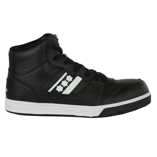 Sportieve S3 veiligheidsschoen met sportieve, trendy looksBasketmodelAluminium veiligheidsneusKunststof veiligheidszoolWaterbestendig, robuuste slijtvaste upper (S3)Gemaakt van lederAdemend, vochttransporterende mesh binnenvoering en PU foam inlegzool voor extra comfortSchokabsorberende en energiebesparende EVA tussenzoolSlijt- en slipvaste sportieve rubberen loopzoolInlegzool gemaakt van 50% gerecycled materiaal