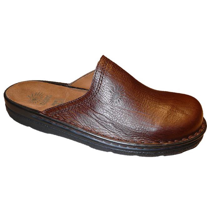 Leren Helix muil, geheel leder gevoerd met antislipzool en een goed voetbed voor heel goed loopcomfort. Lichtgewicht zool, kleur bruin en zwart.bredere leest