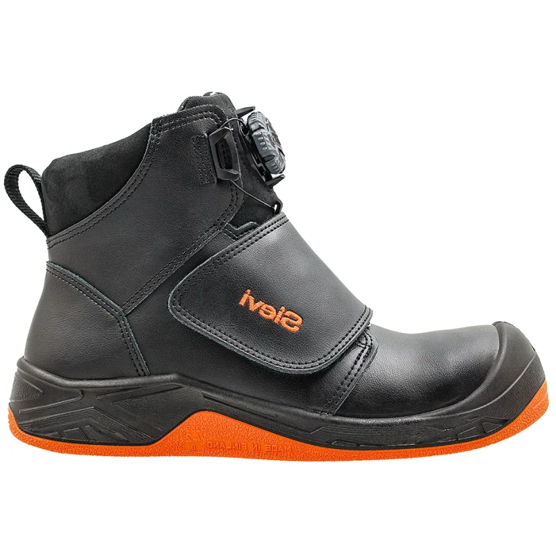 De hittebestendige zool van nitril is bestand tegen temperaturen tot 300°C. De gladde speciale zool laat geen sporen achter en neemt geen vuil op, waardoor de schoen ideaal is voor het werken met pek en asfalt. De lichtgewicht aluminium neus en stalen nagelbescherming bieden zelfs onder zware omstandigheden bescherming. Door het BOA® Fit System vetermechanisme is de schoen gemakkelijk aan en uit te trekken. Hittebestendig stiksel, antistatisch en ESD-goedgekeurd.Teenbescherming: AluminiumBescherming tegen indringing: StaalBovenmateriaal: PU-gecoat leerZoolmateriaal: Dubbellaags PU/RULengte van de BOA®-veter: 90 cm