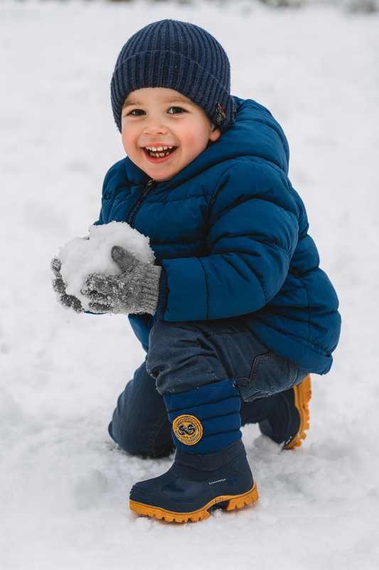 Nylon schacht met waterdichte PVC voet, Nepbont voering, Zool met Profiel, Kraag met vetersluiting. Snowboot