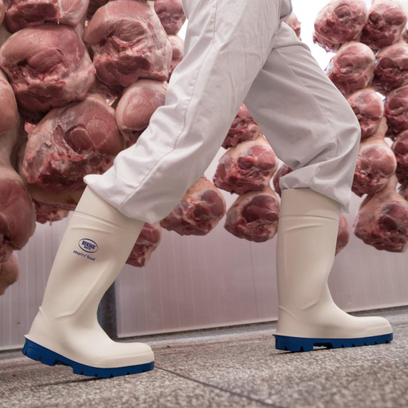 De Steplite Easygrip is dé klassieke voedingslaars; slipvast en makkelijk te reinigen. De isolerende en vochtabsorberende inlegzolen houden uw voeten warm en droog (tot - 20°C). De werklaars is vederlicht, voelt zacht aan en maakt een einde aan vermoeide benen. Voorheen bekend als P2100/1053-Z Bekina: Steplite Food O4 De Bekina Steplite Easygrip S4 Wit-Blauw Z is dé klassieke voedingslaars die voldoet aan de hoogste veiligheidsnormen en functionaliteitseisen. Deze slipvaste en gemakkelijk te reinigen werklaars is speciaal ontworpen voor gebruik in de voedingsindustrie en schoonmaakwerkzaamheden.De laars is voorzien van isolerende en vochtabsorberende inlegzolen die uw voeten warm en droog houden, zelfs in extreem koude omstandigheden tot -20°C. Het vederlichte materiaal zorgt voor een ongekend draagcomfort, terwijl de stalen neus uw voeten beschermt tegen impact.DAGELIJKS COMFORT – De Bekina Steplite EasyGrip laarzen zijn uit Neotane gemaakt en hierdoor vederlicht, extra isolerend (tot – 20°) en bestand tegen oliën, vetten, bloed en diverse chemische reinigingsmiddelen. Deze laarzen hebben een normale pasvorm en kunnen probleemloos de hele dag gedragen worden zonder last te krijgen van zware of koude voeten.OPTIMALE VEILIGHEID EN GEMAK– Deze veiligheidslaarzen hebben een SRC zolenprofiel, wat zorgt voor extra grip en uitglijden vermijdt. Hierdoor kunt u de hele dag zorgeloos aan de slag in industriële keukens, slagerijen, slachthuizen, bakkerijen en zuivelbedrijven. Deze veiligheidsschoenen zijn voorzien van een uitduwnop zodat u uw handen niet moet vuilmaken wanneer u uw laarzen moet uittrekken.BESCHERMING OP ALLE NIVEAUS – De Steplite EasyGrip laars is speciaal ontwikkeld voor de voedingsindustrie. De O4-uitvoering is niet voorzien van een stalen top noch van een stalen zool. De andere uitvoering (S4) is echter voorzien van een stalen top om een hogere bescherming te bieden.UITNEEMBARE INLEGZOLEN – Bij elk paar veiligheidsschoenen wordt een paar uitneembare vochtabsorberende inlegzolen meegeleverd. Zo heeft u tijdens een werkdag geen last van zweetvoeten en kan u ’s avonds de zooltjes eruit halen en laten verluchten. U kan eveneens uw eigen steunzolen gebruiken.MADE IN BELGIUM – Bekina Boots staat garant voor hoge kwaliteit en een persoonlijke klantenservice. De Neotane technologie werd in de hoofdzetel in België ontwikkeld en resulteert in een superieure kwaliteit ten opzichte van traditionele rubberen gummi laarzen. Hierdoor gaan ze veel langer mee.