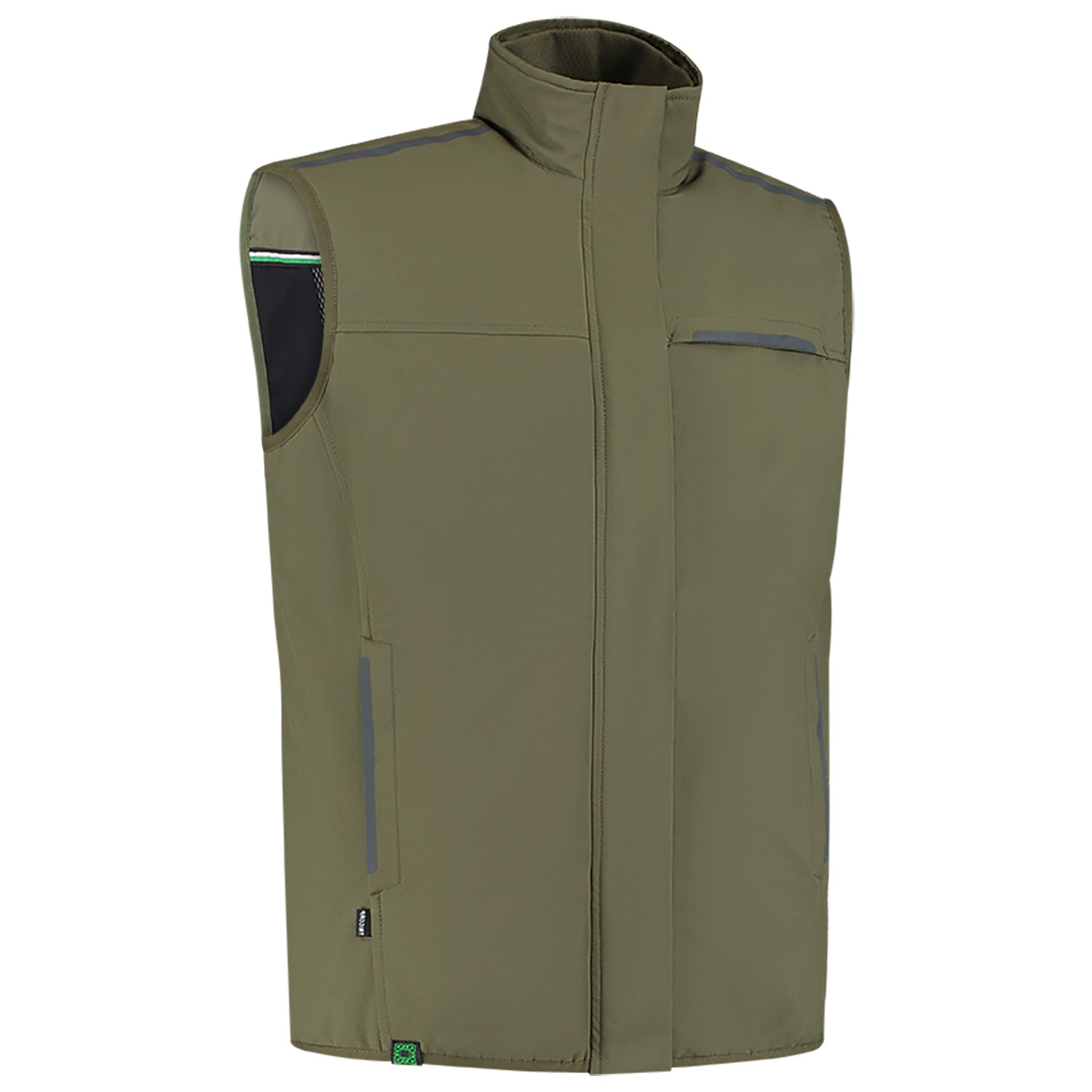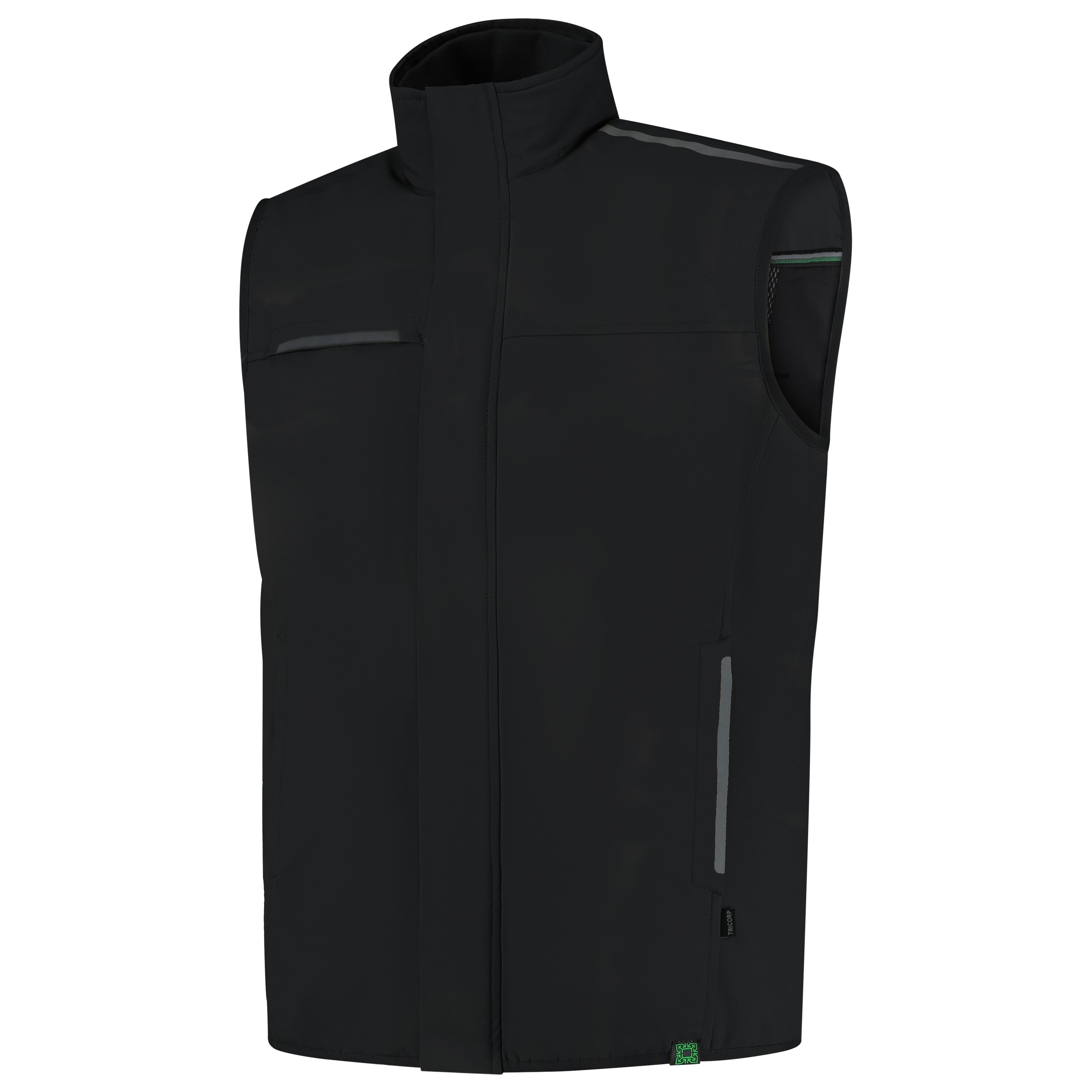 Met deze moderne bodywarmer blijf jij flexibel en warm! Lichtgewicht en volledig duurzaam dankzij het gebruik van recycled polyester. De perfecte toevoeging aan jouw werkoutfit. De bodywarmer heeft een aansluitende ribboord, wat het de moderne ‘puffer look’ geeft. De armsgaten zijn afgewerkt met elastische tape. De ritssluiting is bedekt met een flap die je sluit met drukkers. De borstzak is afsluitbaar met een rits, net zoals de twee zakken op het voorpand. In de borstzak zit ook een loop om je ID-houder te bevestigen. Langs de zakintast en op het achterpand is een extra reflecterende print toegevoegd. Het linker voorpaneel en het achterpand zijn gemaakt van contrast softshell voor extra bedrukkingsmogelijkheden. Maak je outfit compleet met de overige items uit de Rewear collectie.De bodywarmer bestaat voor 100% uit recycled polyester, heeft een PU-membraan en een 155 grams doekgewicht. Dankzij het gebruik van recyclede grondstoffen is de CO2-uitstoot lager en verbruiken we minder water en energie tijdens de productie dan bij een werkjas van virgin polyester! Deze bodywarmer is voorzien van kwalitatieve YKK ritsen. Dit item is verkrijgbaar in de kleuren Army, Ink en Black en in de brede maatrange XS-5XL.