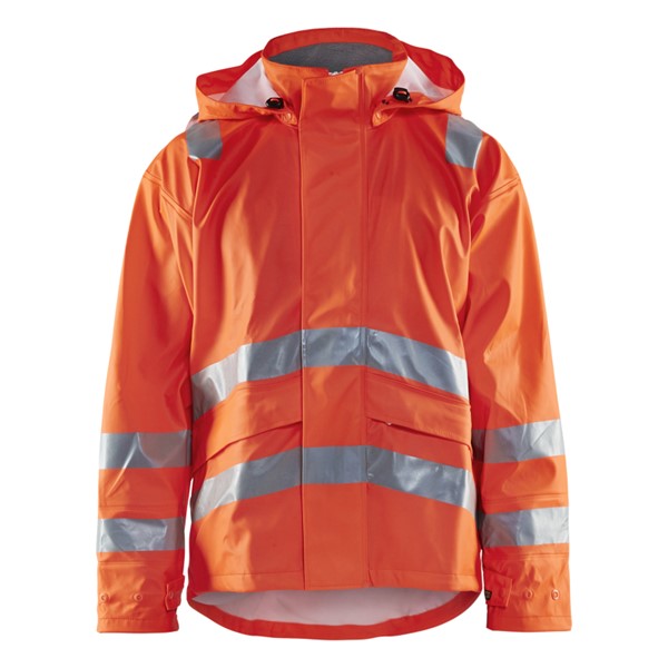 · High Vis regenjas voor diegenen met werkzaamheden die sterke, duurzame maar soepele regenkleding nodig hebben. · Gemaakt van sterk wind- en waterdicht materiaal met gelaste naden, ventilatie opening in rugpand en druppelgoot in de boord. · De jas heeft